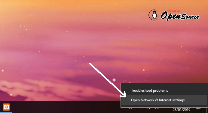 - Silahkan klik kanan pada bagian ikon tersebut maka akan keluar dua pilihan, Terus kita pilih Open Network & Internet setting, contoh gambar dibawah ini.